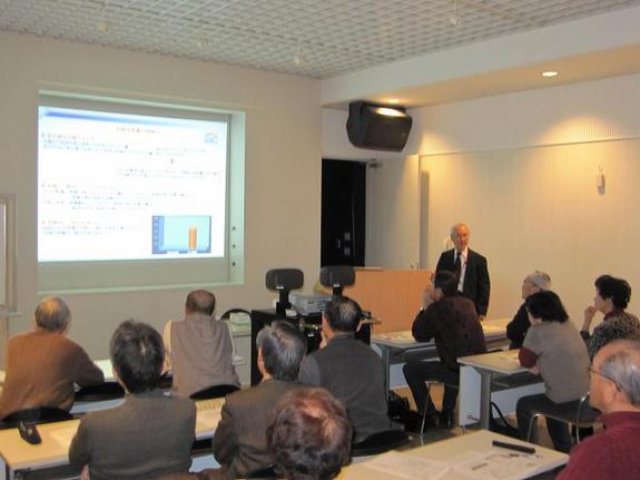 3月5日(土)講座8『身近な環境を考える』の第4回「再生可能エネルギーの技術開発~実験もお見せします~」を市民図書館視聴覚室で行いました。講師は、この講座の1回目を担当された徳田昌生さん、受講者は26名でした。