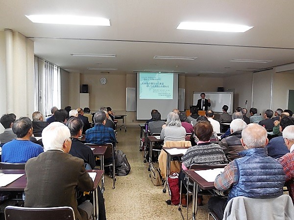 平成28年11月16日(水)主催講座14『北前船ものがたり』の第1回「北前船の誕生から衰退、そして北海道との関わり」を花川北コミュニティセンターで行いました。講師は元小樽市総合博物館館長で北海道北前船調査会主宰および北海道文化財保護審議会委員の土屋周三さん、受講者は58名でした。