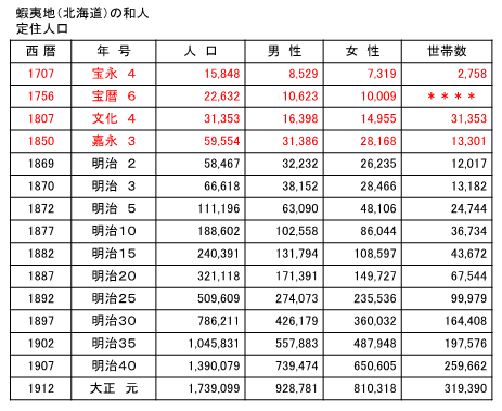 開拓移民の急増状態は人口推移を示す下の資料 でよくわかる。明治2年から約20年間で人口は10倍となり、明治25年から10年で2倍の約100万人となった。