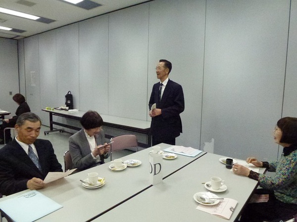 学長のお祝い言葉の後、運営委員も含めた全員で記念写真を撮り、4階会議室に移って懇談会を行いました。